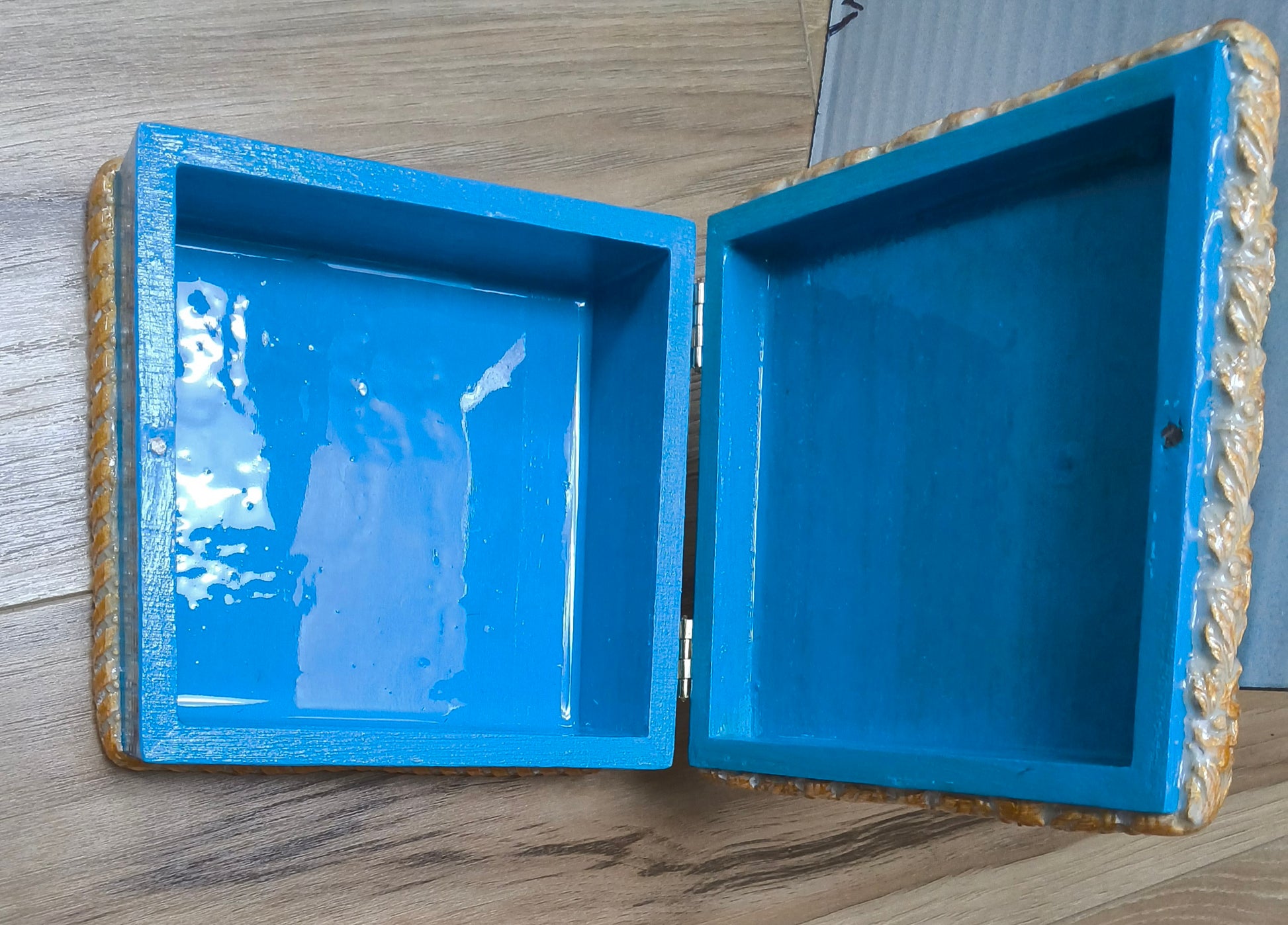 This charming sky blue wooden box features a delightful highland cow design, ready to safeguard your treasures. Perfect for storing jewelry, keepsakes, or small collectibles, it combines whimsical character with functional storage. The sturdy wood construction and playful aesthetic make it an ideal accent piece for any room—whether displayed on a shelf or tucked away for personal use. A one-of-a-kind handcrafted piece that brings warmth and personality to your space.